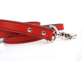 Our bowtie dog leather leash is available in a half an inch Slim width or a three quarters inch Full width.